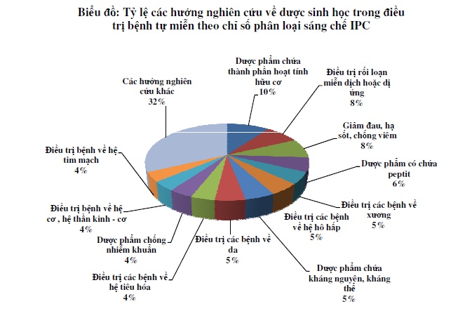 Theo công ty GenScript (Mỹ), chỉ riêng về các liệu pháp sinh học vào kháng thể đơn dòng đặc biệt, hiện đã có hơn 170 kháng thể đơn dòng trong điều trị bệnh ung thư. Dựa trên CSDL Thomson Innovation, kết quả khảo sát về tình hình đăng ký sáng chế đối với các nhóm protein: interferon, interleukin, lymphokine, chemokine, tumor necrosis factors (TNFs) được công bố tại buổi báo cáo chuyên đề “Xu hướng ứng dụng liệu pháp dược sinh học trong điều trị bệnh tự miễn” ngày 31/07/2015 cho thấy, có hơn 24.000 sáng chế đăng ký bảo hộ về ứng dụng liệu pháp dược sinh học trong điều trị bệnh tự miễn. Các đăng ký sáng chế ứng dụng dược sinh học trong điều trị bệnh tự miễn có xu hướng tăng dần theo thời gian, tập trung nhiều trong giai đoạn 2000-2011. Trong giai đoạn này, mỗi năm có hơn 1.000 sáng chế đăng ký bảo hộ.
