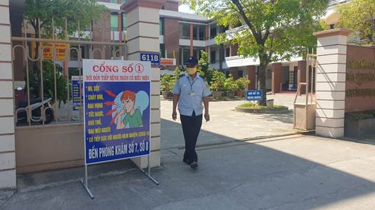 Bộ phận đón tiếp và đo nhiệt độ bệnh nhân không có nguy cơ cổng số 2 (27 Lý Thái Tổ, Quy Nhơn)