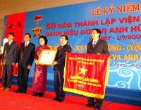 Thừa ủy quyền của Chủ tịch nước PGS.TS. Trần Thị Trung Chiến-Bộ trưởng Bộ Y tế đã trao tặng cho tập thể Viện danh hiệu Anh hùng lao động và đánh giá cao những thành quả Viện Sốt rét-Ký sinh trùng-Côn trùng Trung ương đã đạt được trong suốt chặng đường 50 năm qua. |