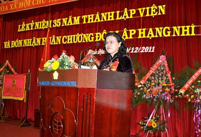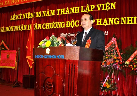 Phát biểu tại buổi Lễ, ông Lê Hữu Lộc- Chủ tịch UBND tỉnh Bình Định đánh giá rất cao những thành tựu đạt được của Viện và tin tưởng rằng với sự năng động, sáng tạo và truyền thống tốt đẹp vốn có của mình, tập thể cán bộ viên chức Viện sẽ tiếp tục giữ vững và phát huy tốt hơn nữa những thành quả đạt được.