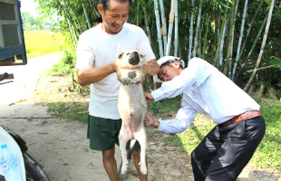 | Tổ chức tiêm phòng cho đàn chó trong cộng đồng ngay sau lễ mít tinh tại Quảng Nam |
