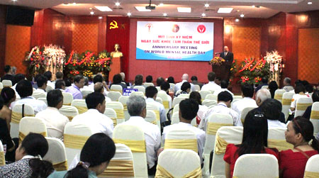 Theo các nguồn tin trong nước, hưởng ứng Ngày sức khỏe tâm thần thế giới Bộ Y tế phối hợp với Hội Tâm thần học Việt Nam, Tổng hội Y học Việt Nam tổ chức mít tinh hưởng ứng Ngày Sức khỏe tâm thần Thế giới (10/10) với thông điệp “Hãy chung sống với người bệnh tâm thần phân liệt”. Tại nước ta, rối loạn tâm thần vẫn đang chiếm tỷ lệ cao trong nhân dân, vấn đề sức khỏe tâm thần trẻ em đặc biệt là tự kỷ, tăng động, giảm chú ý ngày càng tăng. Thống kê của Khoa Tâm thần thuộc Bệnh viện Nhi Trung ương cho biết nếu như năm 2008 chỉ có 450 trẻ có rối loạn tự kỷ đến khám thì năm 2012 đã tăng lên 2.200 trẻ (gấp gần 4 lần), nguyên nhân của bệnh đến nay vẫn chưa được rõ nhưng chắc chắn có sự tác động của một số yếu tố thường gặp như sinh học, tố môi trường do đó vấn đề điều trị còn gặp nhiều khó khăn. Tại lễ mít tinh hưởng ứng Phó Chủ tịch nước Nguyễn Thị Doan chỉ rõ sức khỏe tâm thần có vai trò đặc biệt quan trọng trong mục tiêu chiến lược của quốc gia, quyết định chất lượng cuộc sống, hạnh phúc gia đình, bình an xã hội và sự phồn thịnh của đất nước. Việt Nam luôn xác định bảo vệ, chăm sóc và nâng cao sức khỏe tâm thần cho nhân dân là một trong những chính sách ưu tiên nhằm bảo đảm quyền được bảo vệ sức khỏe của mỗi người dân và đảm bảo nguồn lực phát triển của xã hội.