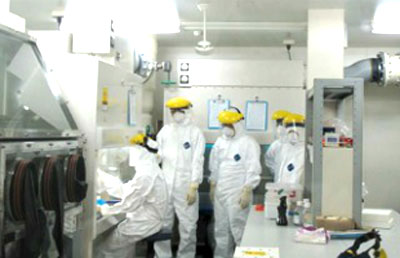 An toàn sinh học cấp 3 hay phòng xét nghiệm ngăn chặn dịch (Biosafety level 3 or containment laboratory) được thiết kế đặc biệt để làm việc với các tác nhân gây bệnh có nguy cơ cao (higher risk pathogens) bao gồm kiểm soát việc ra vào labo, điều chỉnh luồng không khí (directional airflow), sử dụng thiết bị bảo hộ cá nhân đặc biệt (usage of special personal protective equipment) và tủ an toàn sinh học (biological safety cabinets). Ngoài ra, Viện Y học nhiệt đới Đại học Nagasaki (NEKKEN) còn tổ chức một khóa đào tạo trong phòng xét nghiệm EVD ở Nhật Bản và mời hai nghiên cứu viên Việt Nam tham dự.