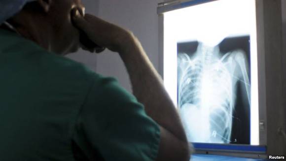 Một bác sĩ kiểm tra X-quang tim của bệnh nhân, ngày 15 tháng 4 năm 2012. Một nghiên cứu mới cho thấy vitamin D3 có thể cải thiện đáng kể chức năng tim mạch ở những người bị suy tim mãn tính |
