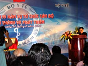 ThS. Phạm Văn Tác, Vụ trưởng Vụ Tổ chức cán bộ, Bộ Y tế báo cáo thành tích đạt được trong 55 năm qua, đồng hành với ngành Tổ chức cán bộ của Chính phủ, Vụ TCCB, Bộ Y tế đã không ngừng phấn đấu xây dựng phát triển, trưởng thành cả về tổ chức, chính trị, tư tưởng, đạo đức nghiệp vụ và kỹ năng công tác, trên cơ sở các quan điểm, nghị quyết của Đảng, sự chỉ đạo của lãnh đạo Bộ và Ban Cán sự Đảng Bộ Y tế, Vụ TCCB đã tham mưu cho Bộ trưởng, cho Nhà nước và hoàn thành được các chức năng, nhiệm vụ được giao, thể hiện trên các mặt công tác chính sau:
