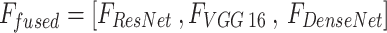 lần lượt là các vector đặc trưng được trích xuất từ ResNet-50, VGG-16, và DenseNet-201,