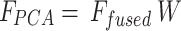 Trong đó là Ffused ma trận đặc trưng đã hợp nhất ban đầu có kích thước Nx8064, với N là số lượng mẫu. Ma trận chiếu W được tính toán bằng cách giải bài toán phân rã trị riêng (eigenvalue decomposition) của ma trận hiệp phương sai của Ffused .