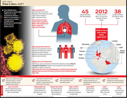 Trước đó, ngày 17/12, các nhà khoa học Hà Lan và Qatar thông báo lần đầu tiên chứng minh được rằng lạc đà bị lây nhiễm virus MERS-CoV, qua phân tích các mẫu phẩm lâm sàng gồm niêm mạc mũi, máu và mẫu phẩm trực tràng lấy từ 14 con lạc đà sống cùng một chuồng ở Qatar. Theo số liệu của Tổ chức Y tế Thế giới (WHO), kể từ khi MERS-CoV xuất hiện lần đầu tiên vào tháng 9/2012, trên toàn thế giới đã có 182 trường hợp nhiễm, trong đó có 79 người tử vong. Saudi Arabia là nước chịu ảnh hưởng nặng nề nhất với 60 người tử vong trên tổng số 145 ca nhiễm.