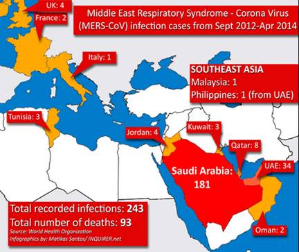 Tháng 10 năm ngoái, một bệnh nhân nữ tại tỉnh Mansoura ở miền Bắc Ai Cập được cho là tử vong do nhiễm virus MERS-CoV. Tuy nhiên, Bộ Y tế nước này sau đó khẳng định rằng trường hợp tử vong này là do nhiễm virus cúm A/H1N1 hay còn gọi là cúm lợn. MERS-CoV được coi là "họ hàng" của virus gây hội chứng viêm đường hô hấp cấp (SARS) từng ám ảnh châu Á năm 2003. Giống như SARS, virus MERS cũng gây các triệu chứng cúm và được cho là có thể truyền từ động vật sang người, song nguy hiểm hơn SARS vì có thể gây suy thận và tỷ lệ tử vong ở người nhiễm bệnh lên tới 51%. Hiện nay các chuyên gia vẫn gặp nhiều khó khăn trong quá trình tìm hiểu đặc tính của MERS, cũng như chưa tìm ra vắcxin phòng chống