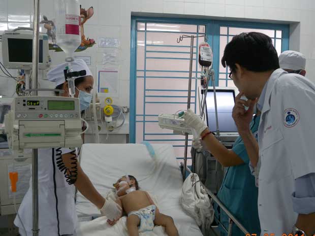 Bệnh viện Nhi đồng 1 và Nhi đồng 2 (thành phố Hồ Chí Minh), hai đơn vị tuyến cuối điều trị bệnh nhi cho cả khu vực phía Nam, luôn trong tình trạng quá tải. “Cao điểm, có đến hơn 7.000 lượt bệnh nhi mắc TCM đến khám tại bệnh viện và gần 2.000 bệnh nhi được điều trị nội trú mỗi ngày”, Tiến sĩ - Bác sĩ Tăng Chí Thượng, Giám đốc Bệnh viện Nhi đồng 1 (thành phố Hồ Chí Minh), cho biết.