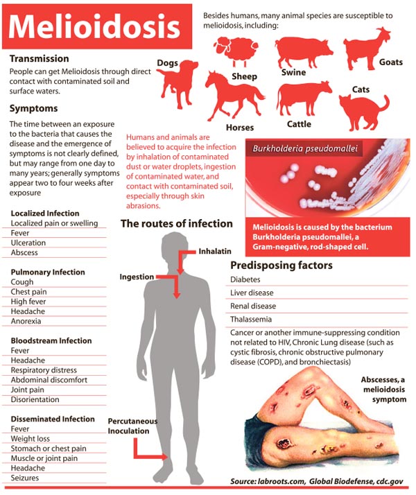 113.Suputtamongkol Y, Chaowagul W, Chetchotisakd P, et al. (1999). "Risk factors for melioiosis and bacteremic melioidosis". Clinical Infectious Diseases. 29 (2): 408–413. doi:10.1086/520223. PMID10476750.