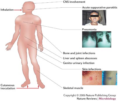 Do các đặc điểm của vi khuẩn như thế đó, nên nhiễm bệnh ở người được xem như là điểm chết cuối cùng của sinh vật này (“dead end”).