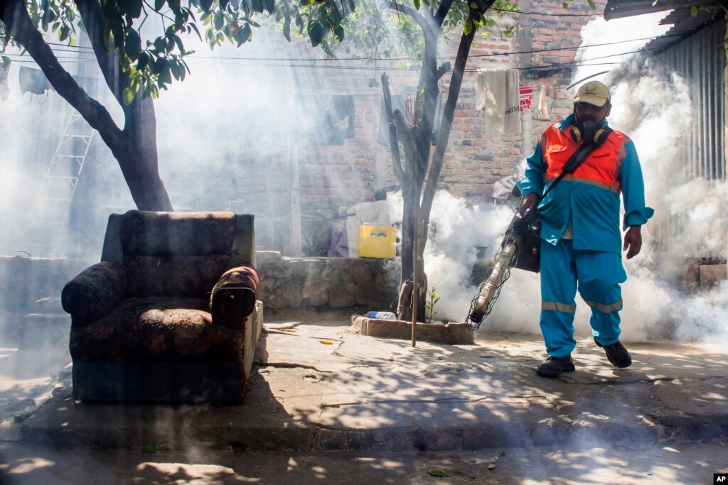 Một công nhân thành phố phun thuốc trừ sâu để chống muỗi Aedes Aegypti-trung gian truyền virus Zika, tại cộng đồng San Judas ở San Salvador, El Salvador, ngày 26/1/2016