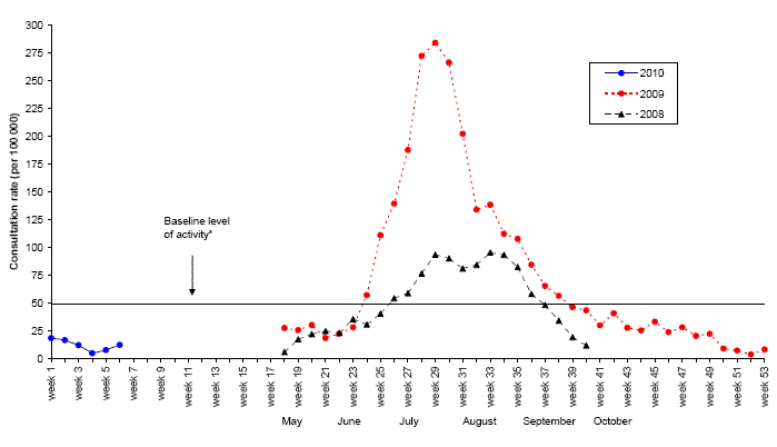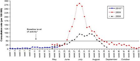 Tại New Zealand, các tỷ lệ của ILI thấp hơn mức trung bình hằng năm nhưng đã gia tăng một cách đều đặn trong tháng trước. Các thông báo gần đây cho thấy rằng một số vùng địa lý đã có sự gia tăng khác nhau trong tuần thứ 3 của tháng 7/2010. Mặc dù số lượng virus phát hiện vẫn còn ở mức thấp nhưng nhìn chung đa số các chủng virus cúm đang lưu hành tại New Zealand là những chủng gây dịch.