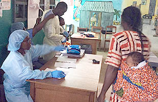 Nhân viên y tế tại Phòng khám bệnh nhân sống sót khỏi Ebola đang làm việc, Bệnh viện Redemption tại Monrovia. WHO/C. Bailey