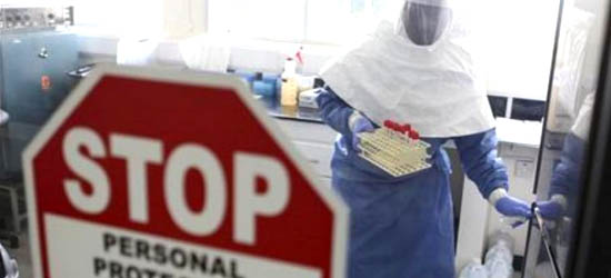 Một nhân viên phòng thí nghiệm đang kiểm tra mẫu virus Ebola thu thập được tại Tây Phi