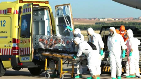 Ngày 12/8/2014. BBC News - Một nhà truyền giáo người Tây Ban Nha bị nhiễm Ebola tại Liberia đã được đưa về nhà điều trị bằng máy bay, Chính phủ Liberia cho biết Liberia sẽ được cung cấp một loại thuốc thí nghiệm chưa được thử nghiệm trên người có tên Zmapp để điều trị cho những người bị nhiễm Ebola và cho rằng động thái này đến sau khi Tổng thống Liberia Ellen Johnson Sirleaf đã yêu cầu Hoa Kỳ cung cấp loại thuốc này, thông tin này được đưa ra khi các chuyên gia y đức gặp gỡ tại Geneva nhằm đánh giá việc sử dụng loại thuốc điều trị mới này.
