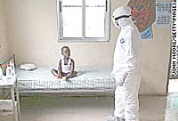 Nhân viên y tế với bộ đồ bảo hộ chống lại dịch bệnh Ebola