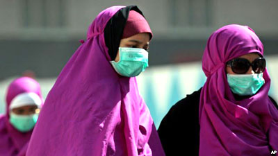 | Người Hồi giáo hành hương mang khấu trang phẫu thuật để ngăn chặn lây nhiễm virus hô hấp được gọi là hội chứng hô hấpTrung Đông (MERS) tại thành phố linh thiêng Mecca, Saudi Arabia. |