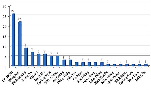 Các tỉnh, thành phố có số mắc tay chân miệng cao nhất tại khu vực phía Nam là: TP. Hồ Chí Minh, Đồng Nai, Đồng Tháp, Tiền Giang, Bà Rịa - Vũng Tàu, Bến Tre, Long An, Bình Dương, Tây Ninh và Vĩnh Long.