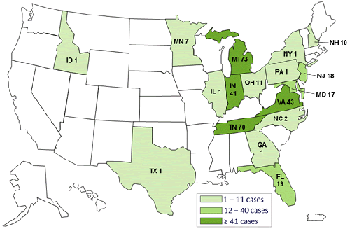Theo Trung tâm Kiểm soát và Ngăn ngừa dịch bệnh Mỹ (US.CDC) cho biết, đến ngày 24/10/2012, đã có 317 ca mắc bệnh viêm màng não do nấm có liên quan đến thuốc steroid kém chất lượng xuất hiện ở 17 bang nước Mỹ, trong đó có 24 trường hợp tử vong.