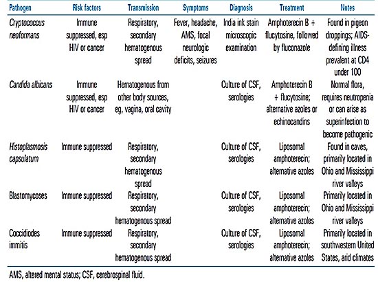 Nguyên nhân phổ biến nhất của bệnh viêm màng não do nấm đối với những người có hệ thống miễn dịch yếu là loại nấm Cryptococcus. Bệnh này là một trong những nguyên nhân phổ biến nhất gây viêm màng não người lớn ở châu Phi.