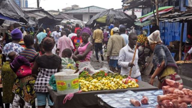 Người dân mua lương thực tại một khu chợ thủ đô Monrovia, Liberia