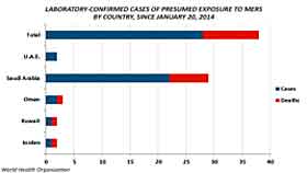 Ngày 14/4/2014. WASHINGTON - Ả Rập Saudi nói rằng một loại virus chết người đang lan ra khắp vương quốc khi các trường hợp khác đã được báo cáo vào cuối tuần ở Các tiểu vương quốc Ả rập thống nhất (United Arab Emirates) và Yemen. Các trường hợp xác định của Hội chứng hô hấp vùng Trung Đông hay còn gọi là MERS đã được nhìn thấy tại hai bệnh viện lớn ở thành phố cảng Jeddah. Cơ quan y tế Ả Rập đang bắt tay vào một loạt các biện pháp nhằm ngăn chặn sự lan rộng của dịch bệnh bùng phát đã kéo dài tới 18 tháng.