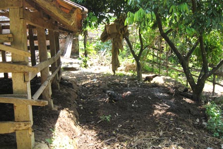 - Chuồng gia súc gần nhà và bờ bụi quanh nhà.