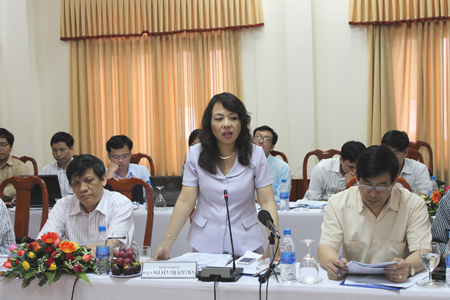 Bộ trưởng Bộ Y tế Nguyễn Thị Kim Tiến phát biểu tại buổi làm việc với tỉnh Quảng Ngãi. (Ảnh: TG) |