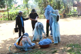 Thực hiện chỉ đạo của Bộ trưởng Bộ Y tế, Viện Sốt rét-Ký sinh trùng-Côn trùng Quy Nhơn được giao nhiệm vụ phối hợp với Trung tâm Y tế dự phòng, Trung tâm Phòng chống sốt rét tỉnh Quảng Ngãi và Trung tâm Y tế huyện Ba Tơ tổ chức triển khai chiến dịch phun hóa chất diệt côn trùng và khử khuẩn môi trường nhằm hạn chế sự phát triển bệnh dịch tại địa phương, góp phần khống chế bệnh viêm dày sừng da bàn tay, bàn chân tại xã Ba Điền, huyện Ba Tơ, tỉnh Quảng Ngãi.