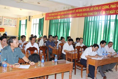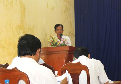 PGS.TS Triệu Nguyên Trung-Viện trưởng Viện Sốt rét-KST-CT Quy Nhơn phát biểu tại cuộc họp đánh giá rút kinh nghiệm chiến dịch phun hóa chất diệt côn trùng và khử khuẩn tại huyện Ba Tơ. |