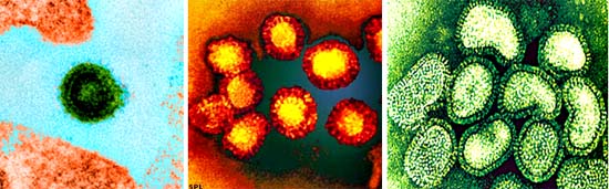 Từ trái qua phải: Dengue virus, West Nile virus và H1N1 virus.