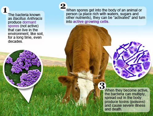 - Bệnh than thể phổi xảy ra là do hít phải bào tử vi khuẩn trong công nghiệp chế biến da, len, xương. Bệnh than thể ruột và thể mồm-họng là do ăn phải thịt bị nhiễm khuẩn. Không có bằng chứng về việc lây truyền bệnh than từ sữa động vật nhiễm khuẩn. Bệnh lây truyền trong gia súc ăn cỏ qua thức ăn và đất bị nhiễm.