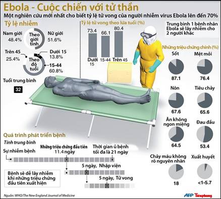Theo thông tin cập nhật của Tổ chức Y tế thế giới (WHO) và Cơ quan Đầu mối IHR (Cục YTDP)đến ngày 23/10/2014 đã ghi nhận 10.002 ca mắc, trong đó 4.926 tử vong chủ yếu tại 3 quốc gia Tây Phi: Guinea (1.540 ca mắc, 904 tử vong); Liberia (4.665 ca mắc, 2.705 tử vong); Sierra Leone (3.706 ca mắc, 1.259 tử vong); DRC (66 ca mắc, 49 tử vong); Nigeria (20 ca mắc, 8 tử vong); Senegal (1 ca mắc, 0 tử vong);Mỹ (3 ca mắc, 1 tử vong); Tây Ban Nha (1 ca mắc, 0 tử vong). Trong số 451 nhân viên y tế mắc bệnh có 252 người tử vong, đáng lưu ý là các trường hợp nhiễm bệnh do vi rút Ebola (EVD) ngoài châu Phi đều là nhân viên y tế trước đó tham gia chăm sóc, điều trị bệnh nhân Ebola.