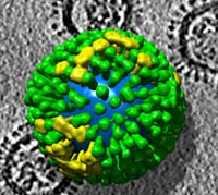 Virus cúm ở người H3N2 với màu xanh là Haemagglutinin, màu vàng là các Neuraminidase |