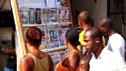 | Nhiều người đang đọc tin tức tại một sạp báo ở Conakry, ngày 28/3/2014 |