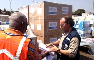 Cập nhật tháng 4/2014. Khi hơn 3,5 tấn vật tư y tế bảo vệ đến Conakry, thủ đô của Guinea vào ngày 30/3/2014, WHO ngay lập tức bắt đầu phân phốiđến cơ sở y tế tại các địa điểm khác nhau nhằm đối phó với dịch bệnh virus Ebola (Ebola virus disease_EVD).