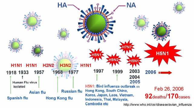 Virut cúm thuộc họ Orthomyxociridae, dựa vào kháng nguyên nucleocapside và kháng nguyên Protein M, người ta chia các chủng virut gây bệnh cúm ra thành 3 type huyết thanh là A, B và C. Trong đó nhóm A là tác nhân chủ yếu gây bệnh cúm ở người và động vật. Trong quá khứ virut cúm đã gây nên nhiều vụ đại dịch lớn làm chết rất nhiều người. Trong đó vụ đại dịch cúm xảy ra đầu tiên ở Tây Ban Nha (1918-1919) gây ra bởi chủng virut cúm type H1N1, gây tổn thất nặng nề với hầu khắp các nước trên thế giới. Qua nhiều lần thay đổi các typs huyết thanh khác như H2N2 (1957-1958, cúm châu Á), H3N2 (1968-1969, cúm Hồng Kông), cúm gia cầm H5N1 (1997, Trung quốc) thì tháng 4. 2009, biến chủng virut H1N1 lại gây ra bệnh cúm xuất phát đầu tiên tại Mexico, sau đó nhanh chóng lan tràn ra khắp thế giới.