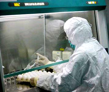 Công ty dược phẩm Novartis của Thuỵ Sĩ đã bắt đầu thử nghiệm vaccine phòng cúm A/H1N1 đợt đầu tiên cho 6.000 người ở mọi độ tuổi tại Anh, Đức và Mỹ. Người phát ngôn của công ty này, ông Eric Althoff, cho biết 50% lượng vaccine thử nghiệm phòng cúm A/H1N1 được phát triển trong môi sinh là trứng gà (ảnh), phương pháp truyền thống sản xuất vaccine, trong khi 50% còn lại được điều chế nhờ công nghệ tế bào mới.