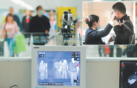 Đo thân nhiệt du khách tại cửa khẩu nhằm phát hiện trường hợp nghi nhiễm H7N9. Ảnh: Internet. |