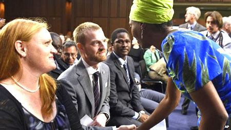 | Người sống sót khỏi Ebola Ts Kent Brantly (giữa) làm chứng trong một phiên điều trần trước ủy ban thượng viện Hoa kỳ vào thứ Ba |