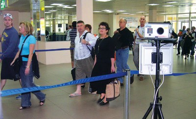 Máy kiểm tra thân nhiệt du khách nhập cảnh tại sân bay Tân Sơn Nhất |