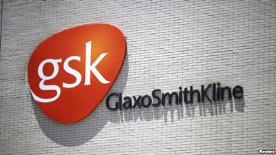 | Logo của GlaxoSmithKline (GSK) được nhìn thấy trên tòa nhà văn phòng. |