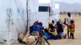 Người tỵ nạn Nigeria đang ngồi bên cạnh một lều của UNHCR tại trại tị nạnMinawao,trên biên giới của Nigeria nằm ở phía cực bắc của Cameroon, ngày 29/3/2014 |