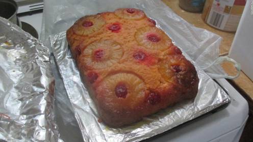 Sau đó, khi tôi kiểm tra máy chụp hình để xem nó còn hoạt động hay không sau khi được để trong môi trường không khí ẩm, mặn 4 tháng trời, tôi nhìn lại những bức hình tôi đã chụp hồi tháng 8/2014. Bức hình cuối cùng là bức tôi chụp sau khi tôi bắt đầu sốt: Bức hình đó là một chiếc bánh dứa úp ngược, được nướng bởi một người bạn tốt từ nhà thờ và không hề nhận ra là tôi đã bị ốm. Con của cô ấy đã mang nó tới cho tôi sau buổi lễ thờ cúng ngày Chủ Nhật và tôi nói với cậu bé chỉ cần để nó trên bậc cầu thang.