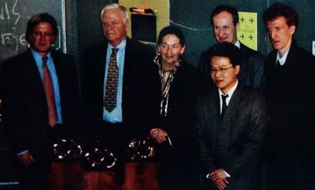 GS Ngô Bảo Châu (hàng đầu bìa phải) tại buổi nhận giải thưởng Clay năm 2004 - Ảnh tư liệu |