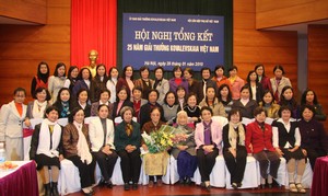 Hội nghị tổng kết 25 năm Giải thưởng Kovalevskaia đã diễn ra tại Trung tâm Phụ nữ và phát triển (TW Hội LHPNVN). Nguyên Phó Chủ tịch nước, Chủ tịch Ủy ban Giải thưởng Kovalevskaia Nguyễn Thị Bình và các tập thể, cá nhân các nhà khoa học nữ được nhận giải thưởng dự hội nghị. Giải thưởng Kovalepskaia mang tên nhà nữ toán học Nga lỗi lạc thế kỷ 19 – Sophia Kovalepskaia, được thành lập năm 1985 do sáng kiến và sự đóng góp về tài chính của vợ chồng giáo sư tiến sĩ Ann và Neal Koblitz nhằm biểu dương, động viên, khuyến khích hoạt động nghiên cứu khoa học của phụ nữ ở những nước đang phát triển, dưới hình thưc trao giải thưởng cho các nhà khoa học nữ xuất sắc thuộc lĩnh vực khoa học tự nhiên. Tính đến nay đã có trên 80 nhà khoa học nữ của các nước: Peru, El Salvador, Nicaragua, Mexico, Cuba,Nam Phi, Mozambic và Việt Nam nhận được giải thưởng này. Tại Việt Nam, trong gần30 năm qua, Uỷ ban Giải thưởng Việt Nam đã xét chọn và trao giải cho hơn 15 tập thể và hơn 31 cá nhân các nhà khoa học nữ xuất sắc, tiêu biểu nhất trong các lĩnh vực khoa học tự nhiên và ứng dụng. Hầu hết những đề tài nghiên cứu của các nhà khoa học nữ đều tiếp cận các vấn đề, các hướng nghiên cứu khoa học hiện đại mà cộng đồng khoa học thế giới đang quan tâm. Bên cạnh việc trao giải thưởng cho các nhà khoa học hàng năm, cứ 2 năm một lần, Uỷ ban giải thưởng tổ chức gặp mặt những sinh viên xuất sắc trong các ngành khoa học tự nhiên của các trường đại học trong cả nước với mục đích giới thiệu rộng rãi về giải thưởng và khích lệ các em phấn đấu vươn lên.