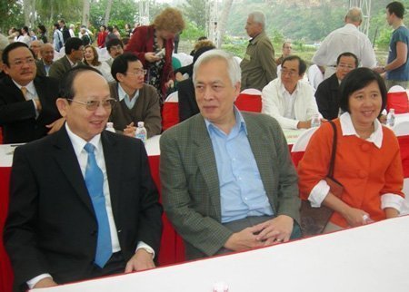 GS Trịnh Xuân Thuận (giữa) và vợ cùng Ông Lê Hữu Lộc - Chủ tịch UBND tỉnh Bình Định tại lễ khởi công xây dựng Trung tâm Quốc tế khoa học và giáo dục liên ngành ở Quy Nhơn, do GS Trần Thanh Vân làm Chủ tịch, tháng 12/2011. |