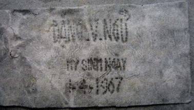 Tấm bảng nhôm được chôn cất theo thi hài của Cố Giáo sư sau khi hy sinh